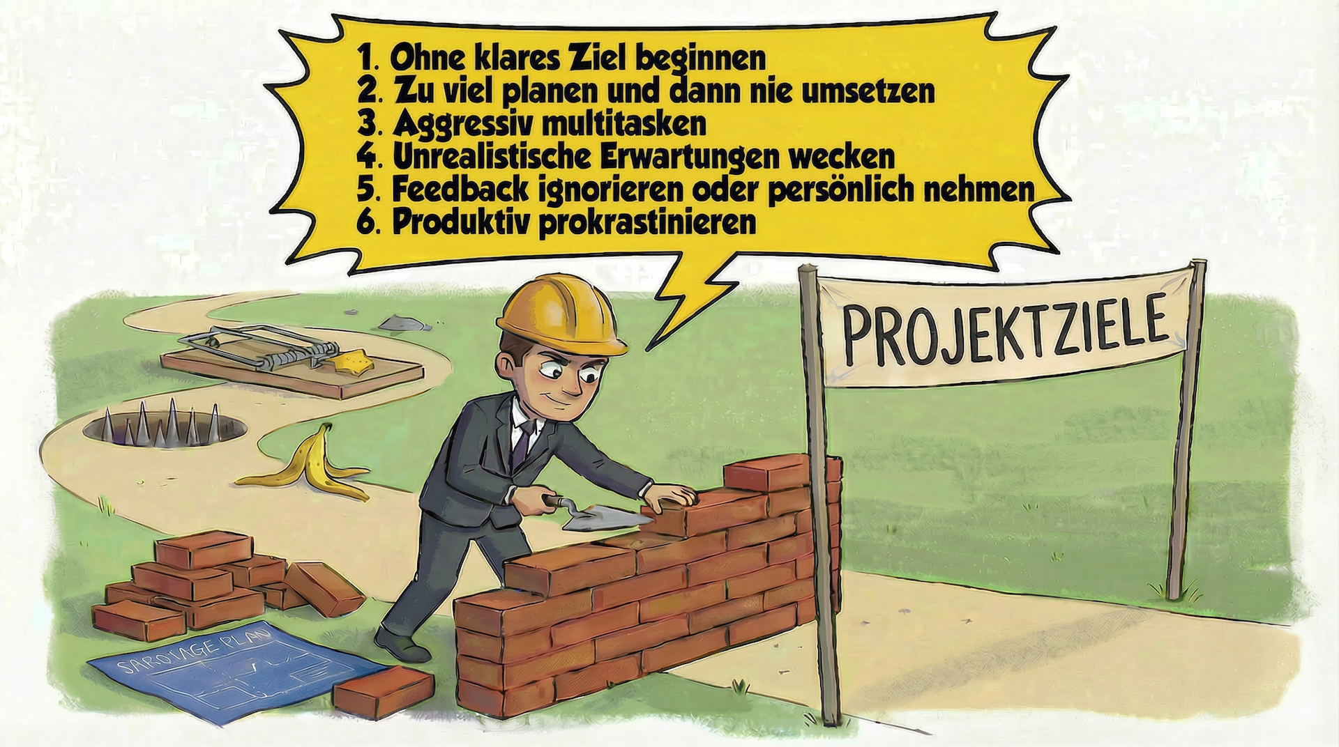 Beginnen wir mit umgekehrtem psychologischem Humor und einer Prise Sarkasmus, um die Frage zu beantworten: „Wie sabotiert man sich am besten selbst, um seine Projektziele zu erreichen?“